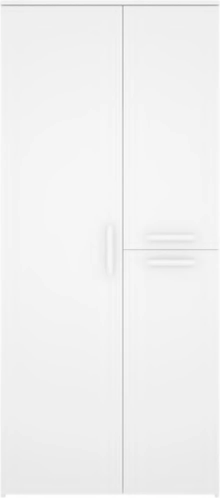 Armario ropero de tres puertas batientes con distribucion interior completa. Dispone de barra de colgar y zona de estantes. Medidas (alto-ancho-fondo): 205x90x50 cm.