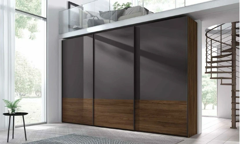 Armario de tres puertas correderas en madera color pizarra lacado con acabados en madera legend.