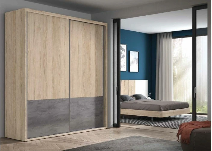 Armario dormitorio 2 puertas correderas con acabado gris Luxor