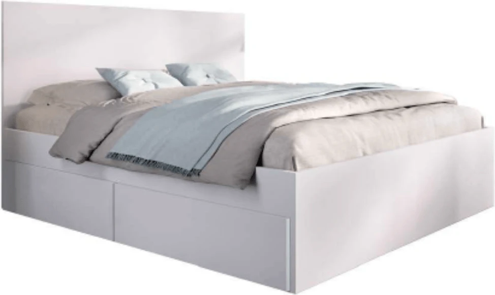 Cabecero y aro de cama para colchón de 135/140×190 cm con 4 cajones de arrastre blancos.
