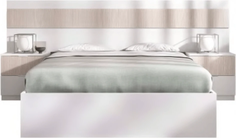 Cabezal + 2 mesitas alistonado/blanco + aro de cama de 135/140×190 cm