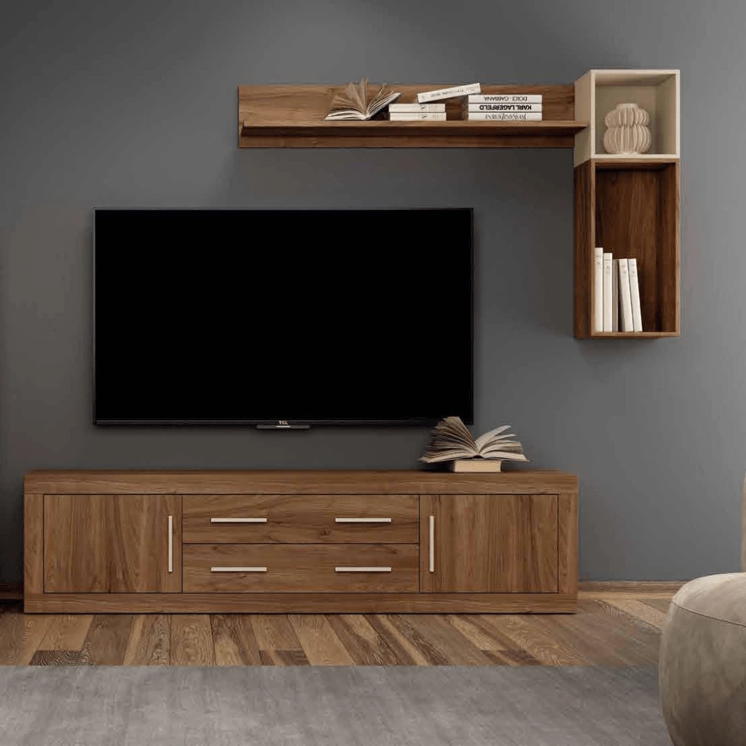 Composición de salón java/perla con mueble TV + módulo + estante