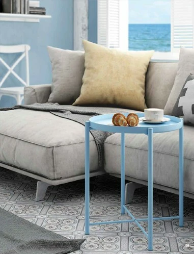 Mesa auxiliar metálica lacada en cinco acabados con 44×52 cm de diámetro.