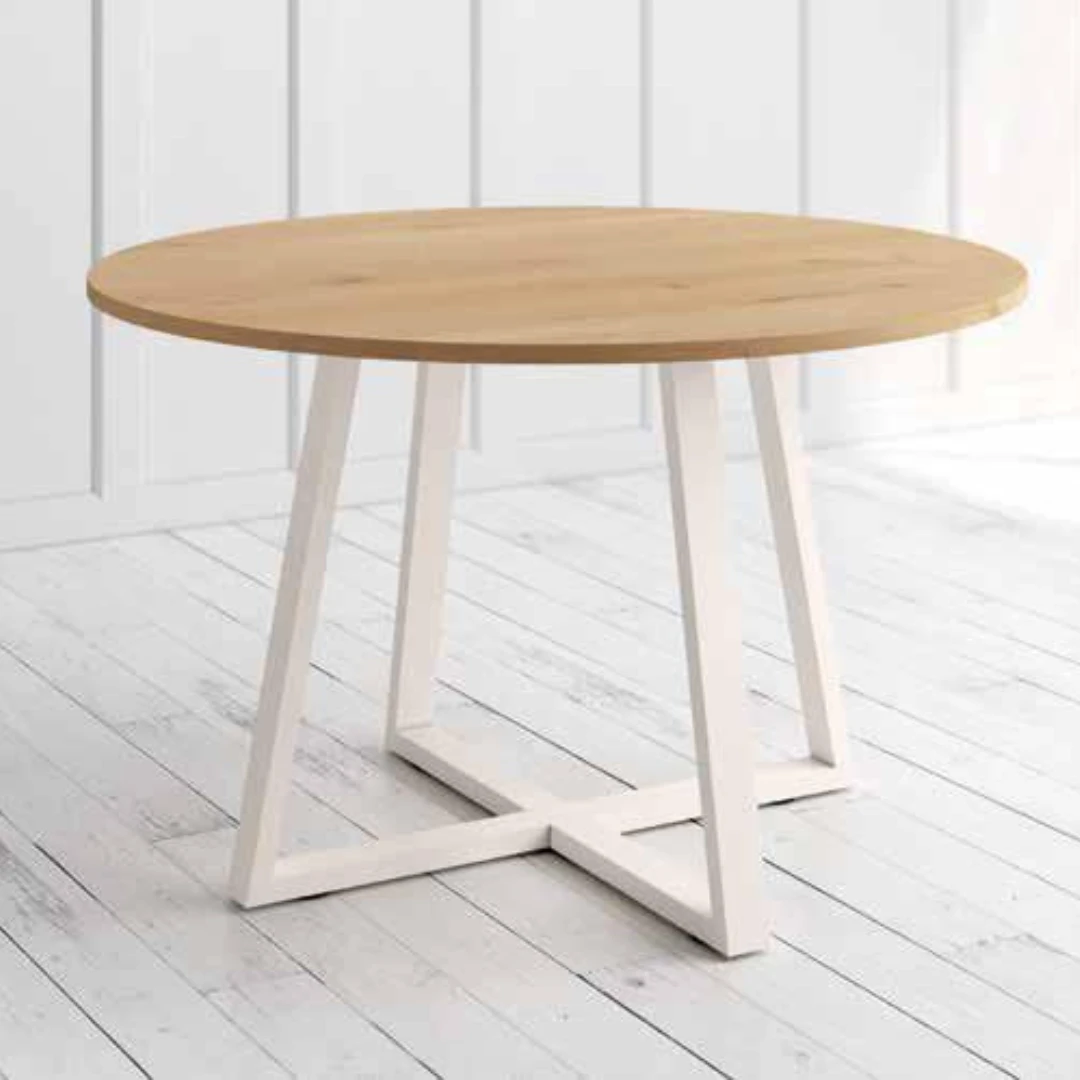 Mesa redonda fija con estructura marfil y tablero disponible en los siguientes acabados: