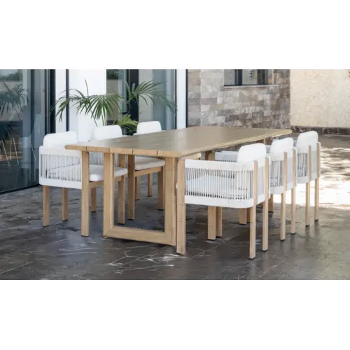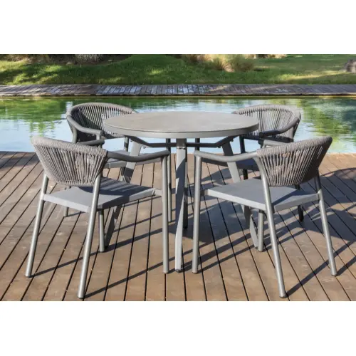 Mesa redonda fija con estructura marfil y porcelánico