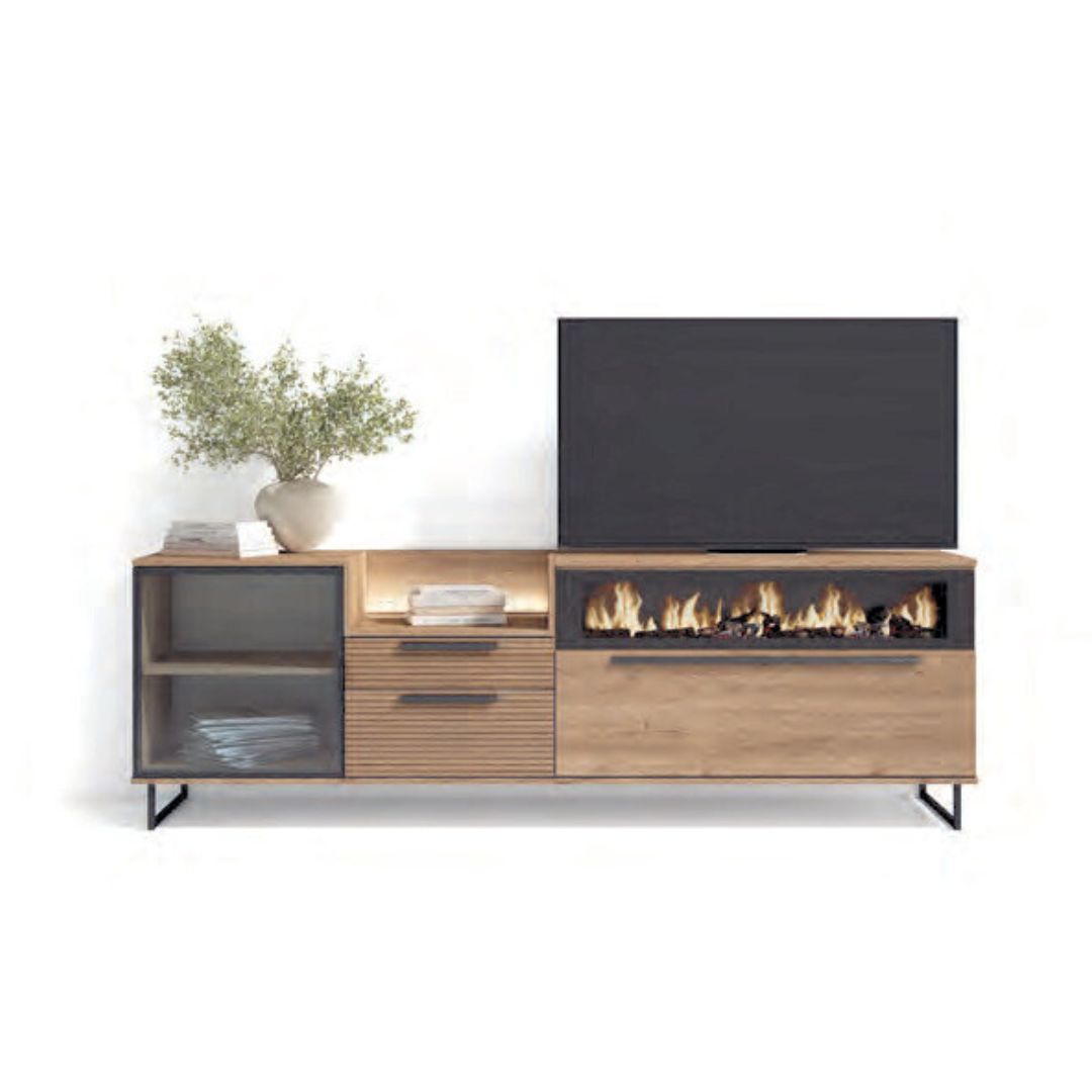 Módulo auxiliar que integra una chimenea eléctrica LED con efecto de fuego 3D para crear un ambiente cálido y acogedor (sin fuente de calor real).