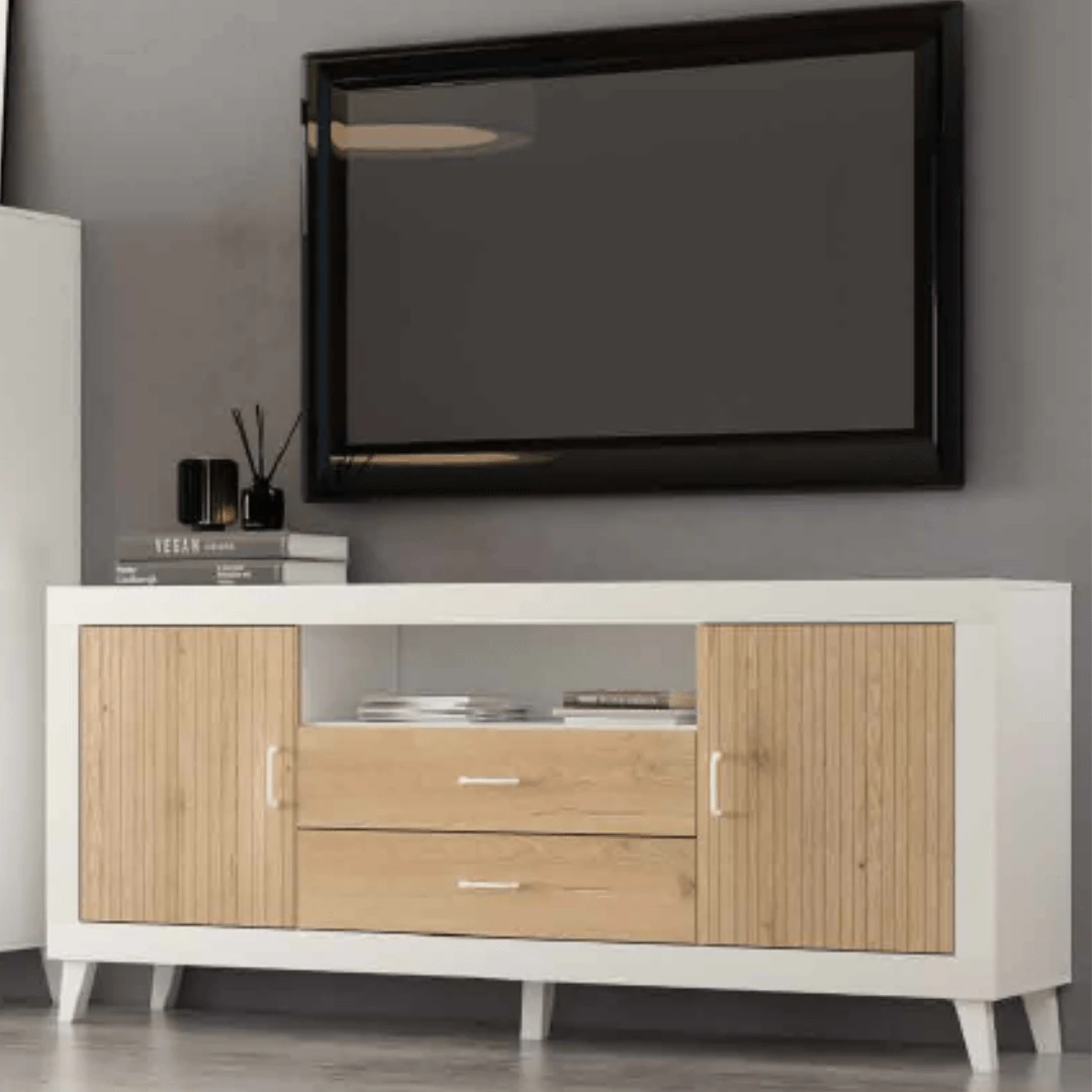 Mueble de TV + módulo 3 puertas más hueco blanco/roble