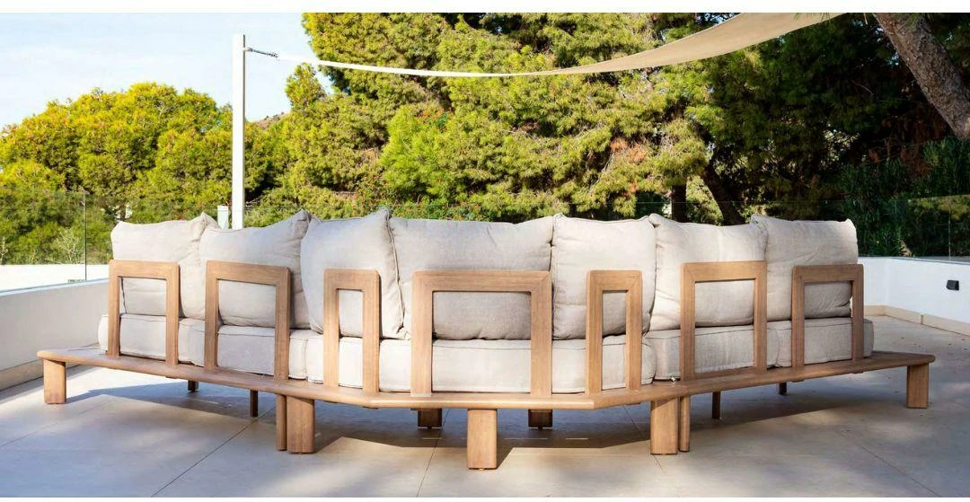 Rinconera de jardín y mesa de centro fabricados en aluminio imitación a madera.