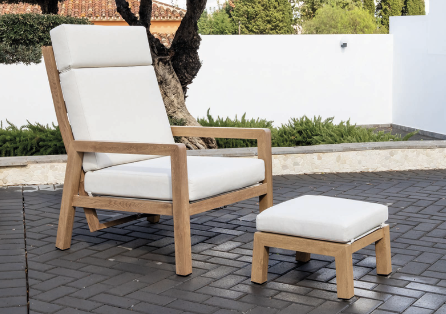 Set relax Milán para exterior con reposapiés fabricado en aluminio, madera en color beige cojinería de olefina de color beige
