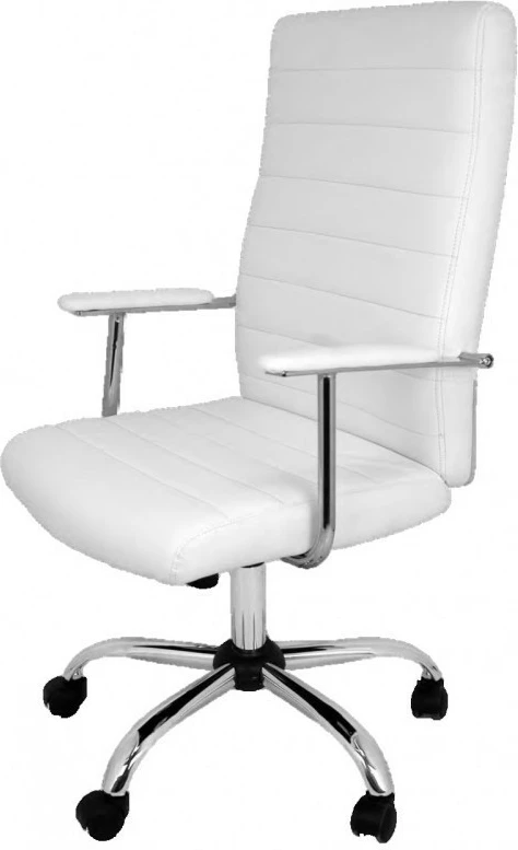 Silla de oficina con asiento en simil piel y base cromada. Disponible en 2 colores