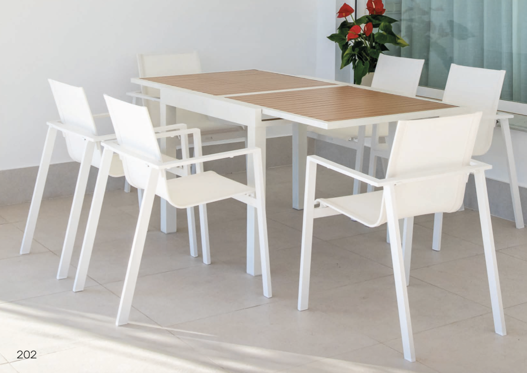 Sillón Oporto de exterior fabricado en aluminio, cuerda en color blanco y antracita asiento de textilene en color blanco