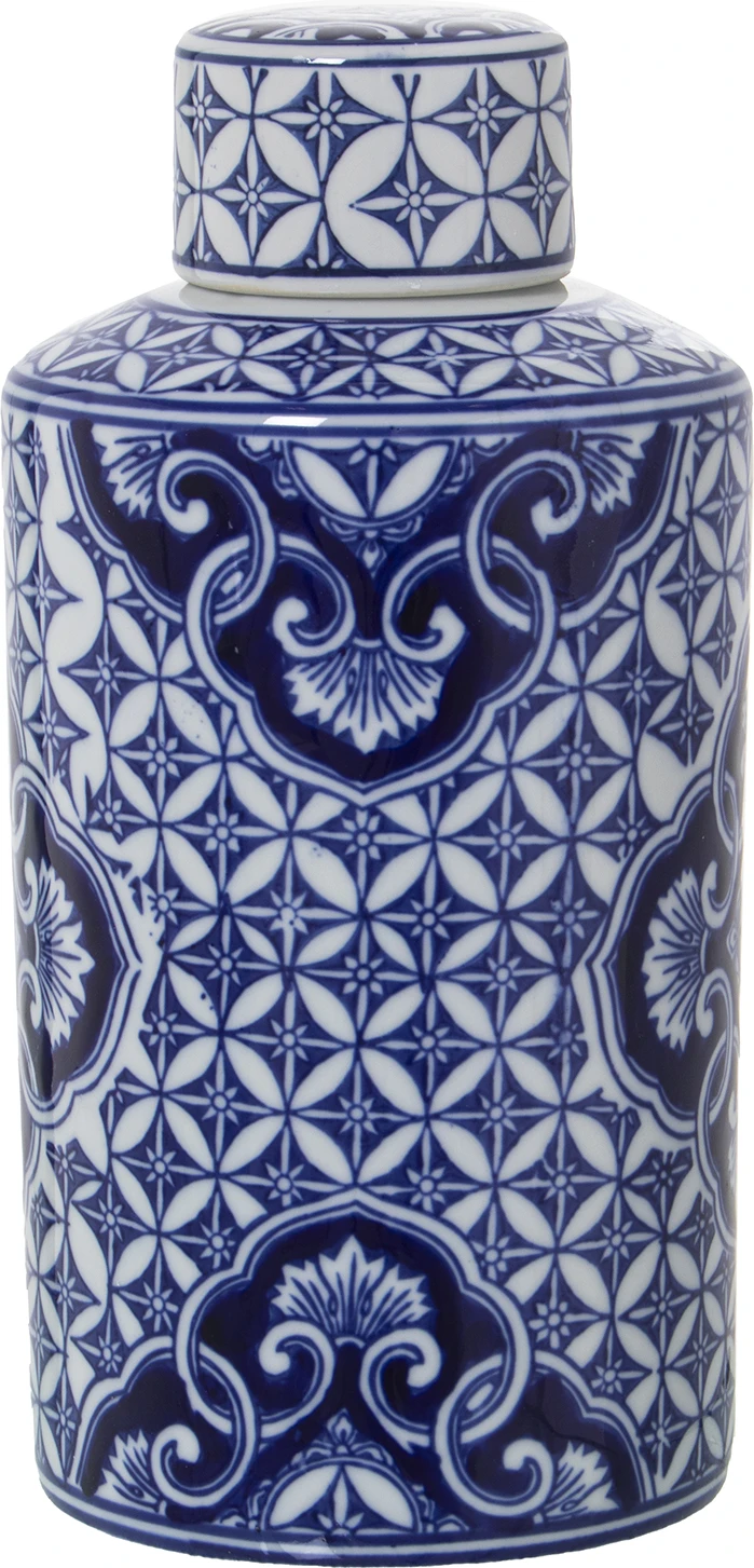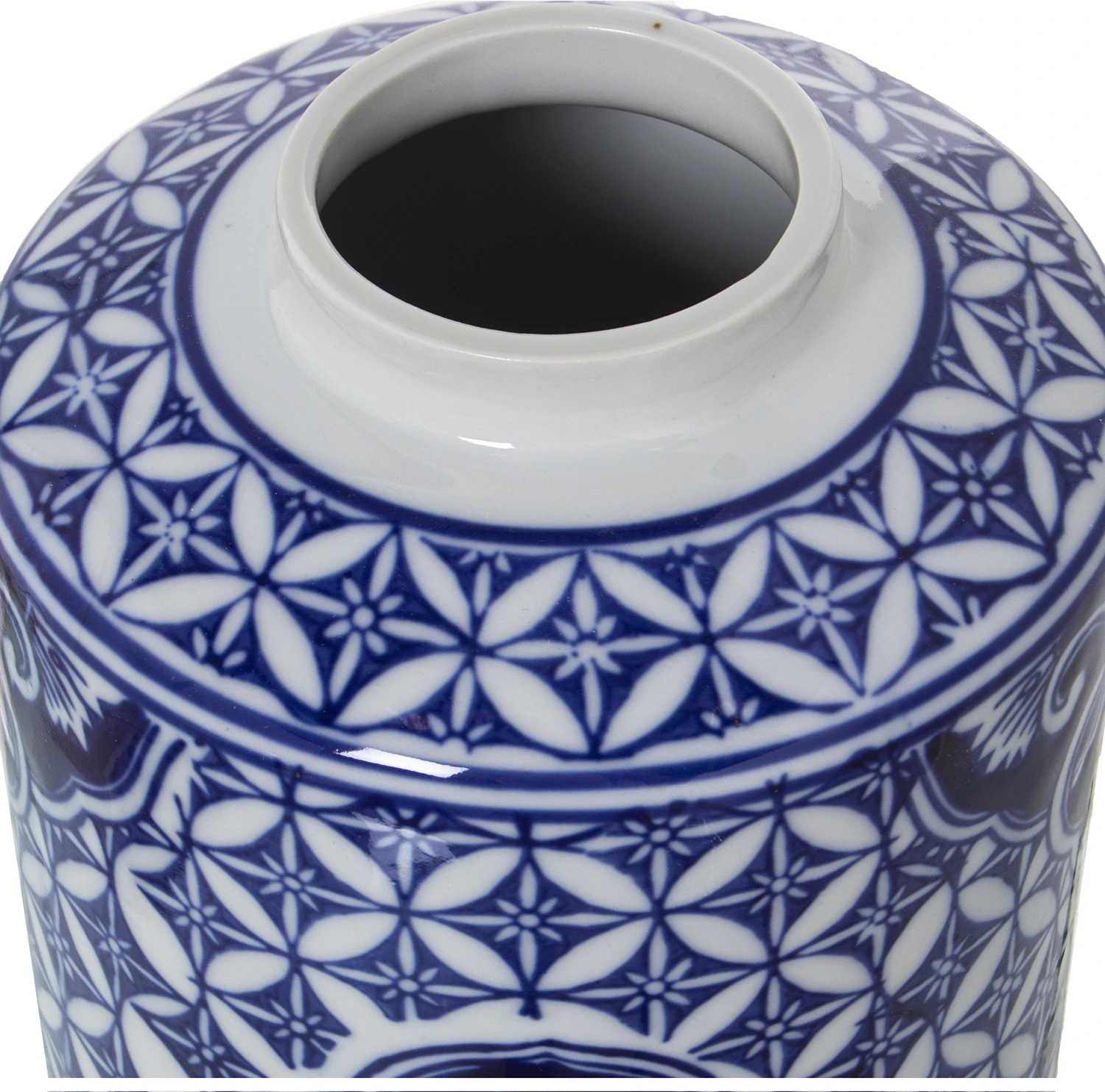 Tibor de cerámica dibujo blanco/azul 30 cm