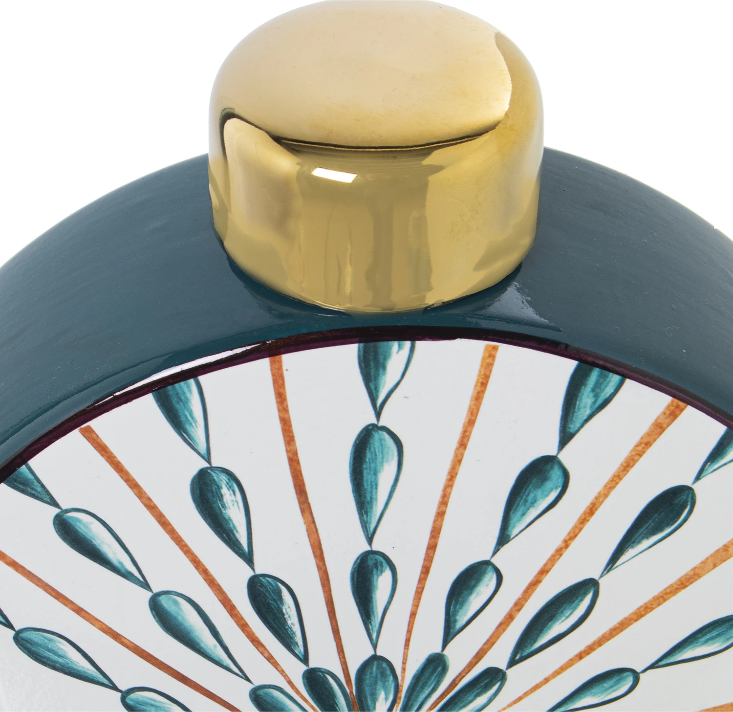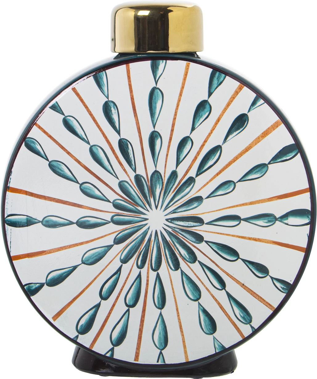 Tibor de cerámica redondo con tapadera dorada 23 cm