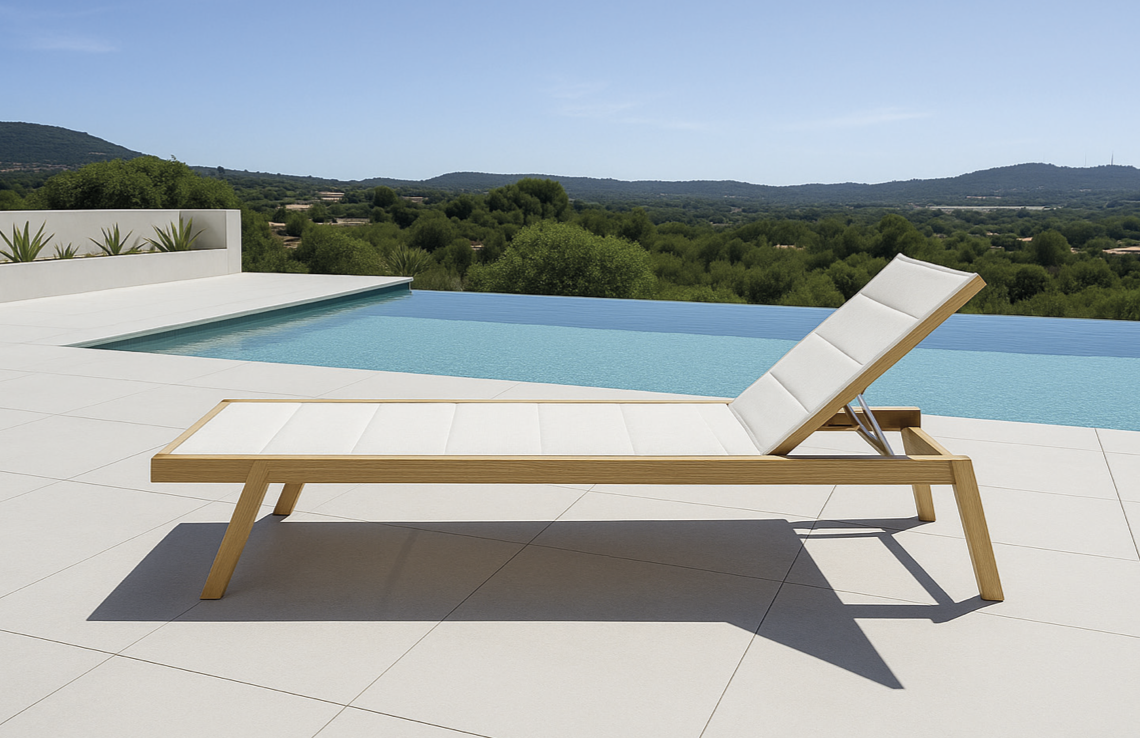 Tumbona Male de exterior fabricado en aluminio, madera producto de exterior de la colección male