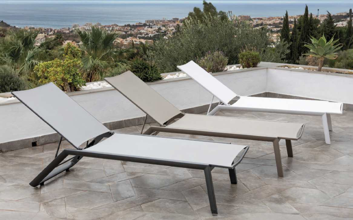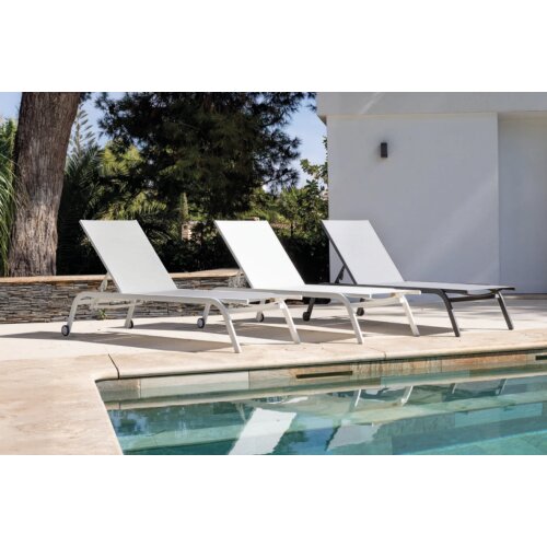 Tumbona Menorca de exterior fabricado en aluminio en color blanco producto de exterior de la colección menorca
