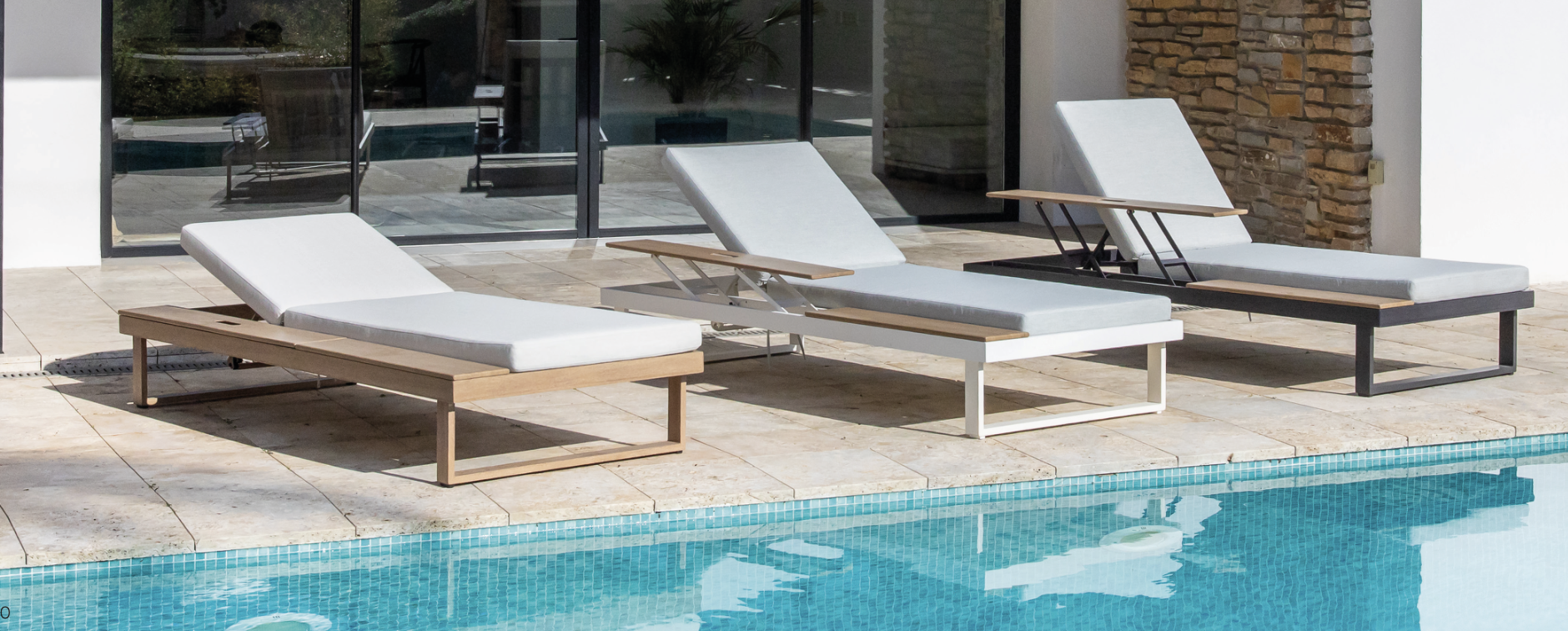 Tumbona Ocean de exterior fabricado en aluminio, madera en color beige cojinería de olefina color beige